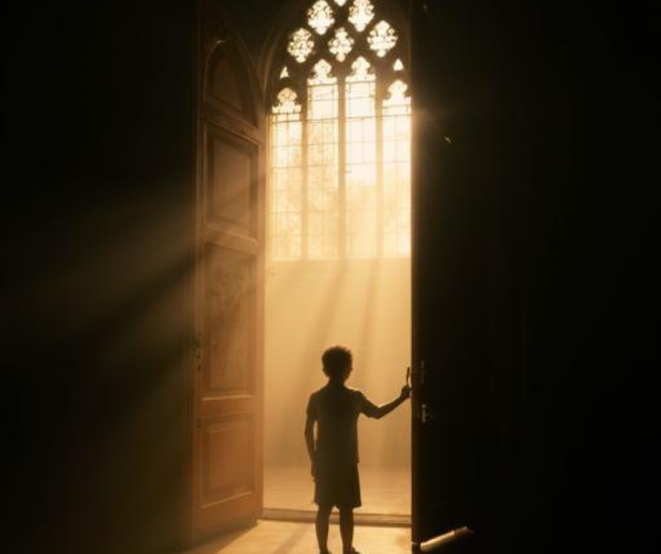 The child enters with his own voice, his own sins, his own little world, and he leaves having encountered not a concept but a Person acting through His Church.